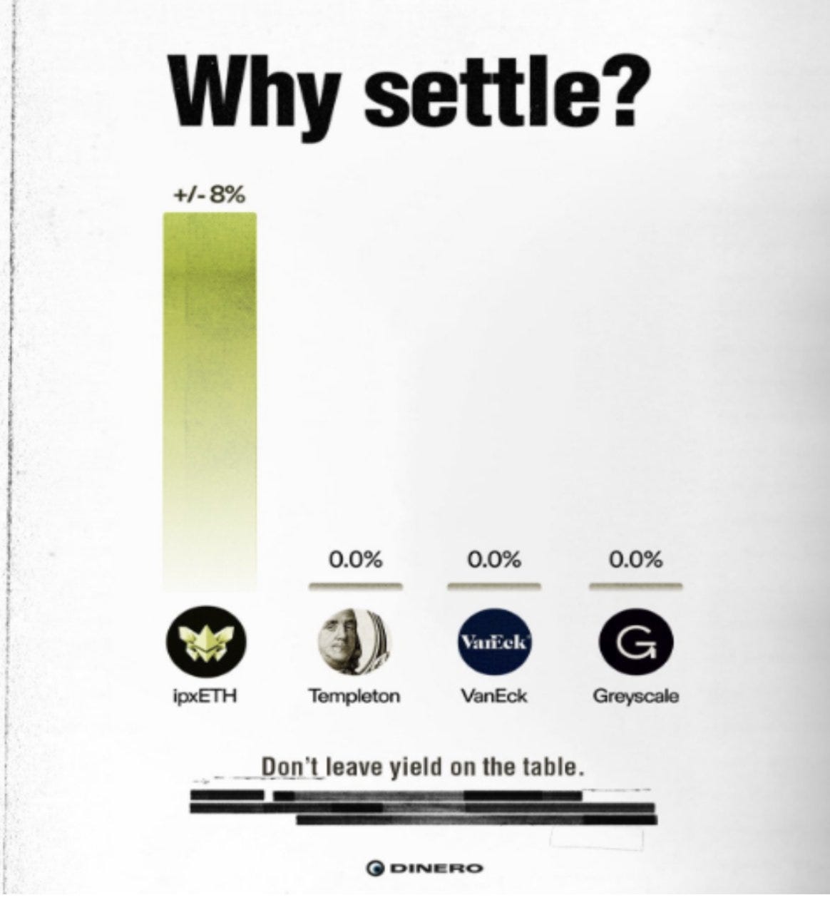 In partnership with Galaxy Digital & Nomura’s Laser Digital, Dinero is rolling out an institutional liquid staking product. The product is notably differentiated from vanilla pxETH, given that it will be issued in a permissioned environment and will not be composable throughout DeFi like Dinero’s other products. However, it will be designed to give strictly regulated institutions like brokers and Registered Investment Advisors access to Ethereum staking yield. We think the cross demand for exposure to ETH and exposure to staking yield is impossible to overstate.